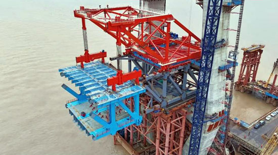 發(fā)布日期:2025-06-09? ? ? ? 6月8日,由中鐵大橋局承建的滬渝蓉高鐵滬寧段V標(biāo),崇啟公鐵長江大橋主通航孔橋首節(jié)鋼梁成功吊裝。中鐵大橋局作為中國橋梁建設(shè)的“國家隊”,具有豐富的橋梁施工經(jīng)驗,幾十年來在跨江、跨海、跨峽谷等極端環(huán)境下的橋梁施工中創(chuàng)造了多項世界紀(jì)錄和技術(shù)突破。此次施工中,中鐵大橋局與天業(yè)通聯(lián)合作研發(fā)新型TLJ1100架梁吊機(jī),該設(shè)備為項目建設(shè)的順利推進(jìn)提供了關(guān)鍵性的保障。